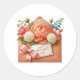 O adesivo é mostrado em uma linda impressão artística de buquê floral.