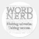 Cansado de má gramática e má escrevendo? Professores, escritores, editores, ourivesaria e todos os defensores da utilização correta da linguagem: sejam um Nerd do Word orgulhoso! Você tem essa educação por uma razão — vamos chuta alguns advérbios! O texto de design parece aço escovado, e o fundo da imagem é uma lista aleatória de termos gramaticais.
