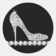 Adesivos elegantes de sapato de salto alto com diamantes preto e branco. Estes belos adesivos de sapato de salto alto com diamantes brancos são facilmente personalizados para o seu evento, bastando escolher o botão "Personalize!" para começar a adicionar seu texto, estilo de fonte, tamanho e cor da fonte e texto. Por favor, note que todos os adesivos, cartões e convites que você encontrará no Zazzle são gráficos impressos sem joias, laços, relevos, dourados ou peças adicionais.