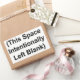 Uma folha de quatro adesivos, de 4,5 polegadas de largura x 2,7 polegadas de altura, com as palavras "Este Vazio de Espaço Intencionalmente Esquerdo" entre parênteses.