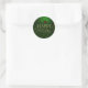 Os adesivos verdes escuros com bagas ocas e Feriados felizes em letra dourada.