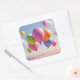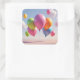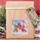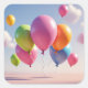 Um monte de balões coloridos flutuando até um céu azul cobre este adesivo de festa.