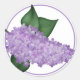 Um adesivo redondo mostrado com uma adorável impressão de arte de flores lilás. Procure a placa de nota simples de papelaria correspondente e a etiqueta de correspondência. Personalize este item ou comprar como está. Imagem do stock