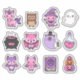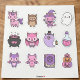 Decore suas coisas com esta adorável folha de ilustrações de Halloween em tons de rosa e roxo. Esta coleção destaca criaturas divertidas como um gatinho unicórnio rosa, uma coruja marrom doce e um fantasma branco acenando. Você também encontrará um diabinho rosa usando um chapéu de bruxa, um espírito roxo com um olho só segurando uma pequena lanterna, uma raposa rosa com asas de morcego e morcegos rosa e roxo amigáveis. O conjunto é finalizado com objetos mágicos como um caldeirão de coração borbulhante, uma garrafa de poção rosa redonda, um livro de feitiços roxo e uma pilha colorida de abóboras sorridentes. As cores pastel brilhantes e rostos alegres trazem um clima completamente suave e divertido para os seus temas de temporada assustadora favoritos.