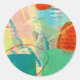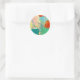 Um design lúdico e tumultuado em verdes, vermelhos, azuis e amarelos alegres.