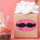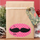 O design de bigode de tendência em fundo de bolinhas rosa pode ser usado para etiquetas de presentes ou para remover texto para outros usos. Esta é uma maneira fofa de decorar esses pacotes para ele (pai, chefe, treinador, noivo, filho), mas as meninas também adoram isso.
