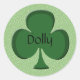 Adesivos redondos divertidos e personalizados de trevo irlandês verde, perfeitos para o Dia de São Patrício, para um rapaz ou moça irlandês, ou para um casamento irlandês. Mostrado está o nome totalmente editável e personalizável, Dolly. (O nome também pode ser removido.) Criado por 369MyName.