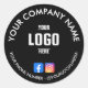 Destaque sua marca com esses adesivos personalizados de logo empresarial redondos e impermeáveis - perfeitos para embalagens, branding e rotulagem de produtos. Feitos de vinil autoadesivo resistente com acabamento liso e brilhante, esses adesivos são impermeáveis e duráveis, garantindo que seu design permaneça vibrante e intacto.