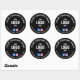• Grande: 7,6 cm de diâmetro, 6 autocolantes por folha