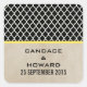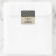 Os adesivos elegantes e modernos do Casamento Chic Quatrefoil, com um padrão de tendência marroquina, um papel vintage com um fundo e um par de listras amarelas finas. Esses adesivos de casamento de na moda são fáceis de personalizar com seus detalhes de casamento. Clique em "Personalizar" para encontrar mais opções de personalização.