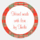 Embeleze seu lindo presente feito à mão com um adesivo personalizado. Personalize facilmente estes adesivos redondos pequenos de 1,5" TARTAN VERMELHO DE SCOTT com "Personalizar este modelo". Escreva "Tricô à mão", "Croché", "Costurado", "Colcha", "Assado", "Feito à mão", "Esculpido", etc., o que quiser, para torná-lo seu. Altere a fonte, o tamanho da fonte e/ou a cor com Editar Design e Editar Texto. * Este design é minha pintura original em aquarela inspirada no tartan do clã Red Scott. * Outros adesivos e produtos correspondentes estão disponíveis na categoria TARTAN PLAIDS da minha loja. Todos os produtos com tema "Feito à mão" estão na Coleção FEITO À MÃO. ** Se você quiser transferir este design para outro tipo de produto, forma ou tamanho, por favor verifique primeiro a minha loja para ver se eu já tenho um pronto, porque eu já terei ajustado o design para caber perfeitamente