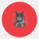 Os adesivos redondos clássicos de gatinhos vermelhos, decorados com um gatinho adorável e uma terra de rosas.