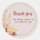 Expresse gratidão sincera com este elegante adesivo floral de Obrigado, projetado com flores suaves em aquarela e uma moldura circular dourada refinada. Perfeito para casamentos, chá de noiva, chá de bebê, aniversários e eventos especiais, este design atemporal adiciona um toque final gracioso às bolsas de lembranças, caixas de presentes, envelopes e embalagens. Uma maneira bonita de agradecer aos convidados por fazerem parte dos seus momentos mais memoráveis.