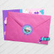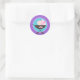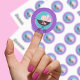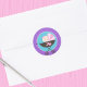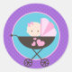 Adesivos Redondos Clássicos de Aniversário de Boneca Bebê Menina em Roxo, Rosa e Azul Teal.