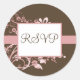 Nossos adesivos de Casamento com um fundo de espiral floral cor de chocolate castanho e rosa. Faça a correspondência para completar a aparência. Também disponível com monogramas, ou os nomes da noiva e do noivo.