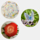 Adesivos sortidos. Floco de neve, borboleta azul, topo de morango fatiado.