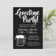 Adeus, adeus, indo embora de convites de festas de cerveja. Convites personalizados com ícones modernos de tipografia e vidro de cerveja. Cores pretas e brancas ou personalizadas. Convidados legal para a festa surpresa de aposentadoria, festa de janto, deslocalização ou reunião antes de sair (no exterior) para uma nova casa. Texto de anúncio personalizável. Divirta-se comemorando! Cantos arredondados opcionais. Perfeito para colega, colega de trabalho, aposentado feliz, viajante, companheiro de equipe, colega de quarto, companheiro de quarto, melhor amigo, filhos, chefe, funcionário, vizinho, colega de trabalho, trabalhador de escritório, treinador, treinador, soldado, etc