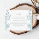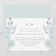 O anúncio romântico e arejado de adiamento de casamento com flores e folhagens azuis apresenta lindas folhas e parte de trás do cartão azul claro. Este anúncio elegante é uma maneira sofisticada de informar aos convidados que a data do seu casamento está sendo remarcada devido a circunstâncias imprevistas.