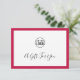Este certificado de presente tem um centro branco e uma cor de borda editável (clique em personalizar e altere a cor de fundo) na frente com as palavras "Um presente para você" no script de caligrafia e onde você também pode adicionar seu logotipo. Personalize-o substituindo o texto do marcador de posição e a imagem do marcador de posição pelo seu próprio logotipo. Para obter mais opções, como alterar a fonte, seu tamanho e espaçamento entre letras, clique no botão "Personalizar". *Observe que a Marca d'água do Zazzle que aparece na visualização de zoom NÃO aparecerá no produto impresso final. © Rosewood e Citrus