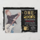 Um Drum de Drumset Rockstar Rock Star Conjunto Metálico Glitter Glitter Primeiro Convite Fotográfico de primeiro aniversario