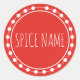 Adesivos de etiqueta de pote de especiarias vermelhos com uma tipografia caprichosa. Simplesmente exclua as palavras e adicione o nome da sua especiaria. Quando as etiquetas do seu pote de especiarias se desgastarem e mancharem, atualize-as com este estilo fofo de etiqueta de pote de especiarias. DICA: Se o nome da especiaria for muito longo para caber na linha, clique em "personalizar" e clique na fonte e diminua o tamanho da letra.