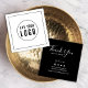 A placa de inserção da embalagem do na moda apresenta o seu logotipo e uma borda preta quadrada na frente e "Obrigado" no roteiro de caligrafia moderno com o resto das suas mídias sociais e informações da Web no verso. Você pode alterar a cor do plano de fundo clicando em personalizar e alterar o plano de fundo. Personalize-o substituindo o texto do marcador de posição e a imagem do marcador de posição pelo seu próprio logotipo. Para obter mais opções, como alterar a fonte, seu tamanho e espaçamento entre letras, clique no botão "Personalizar". *Observe que a Marca d'água do Zazzle que aparece na visualização de zoom NÃO aparecerá no produto impresso final. © Rosewood e Citrus