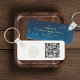Chaveiro azul com estrelas na frente com texto dourado personalizado. A parte traseira tem seu nome comercial, logotipo e um código QR para seu site de negócios. Excelente para eventos comerciais, festas de feriado e muito mais. Use o modelo para criar seu próprio chaveiro de código QR personalizado.