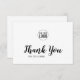 Este cartões de agradecimentos apresenta o script e a fonte de máquina de escrever e você pode adicionar o logotipo na frente contra uma cor de fundo editável (clique em personalizar e altere a cor). Personalize-o substituindo o texto do marcador de posição e a imagem do marcador de posição pelo seu próprio logotipo. Para obter mais opções, como alterar a fonte, seu tamanho e espaçamento entre letras, clique no botão "Personalizar". *Observe que a Marca d'água do Zazzle que aparece na visualização de zoom NÃO aparecerá no produto impresso final. © Rosewood e Citrus