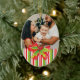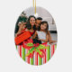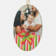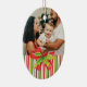 Um enfeite fotográfico para ajudar a celebrar seu Natal com uma foto especial das crianças, ideal para atualizar todos os anos para ver como crescem, poderia ser um presente de excelente para os membros da família. Este ornamento sazonal de férias é embelezado com uma pintura de cor de água sagrada e arco e listras festivas sazonais vermelhas, verdes e brancas.