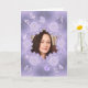 Um jardim de flores e borboletas em matizes e lavandas. Um cartão de aniversário para você adicionar sua própria foto. Um olhar moderno. Dentro a carta é um verso adorável. Copyright Norma Cornes
