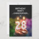 Adicione um nome para personalizar este convite de festas único.Um divertido 28º convite de aniversário com números de velas felizes queimando em um cupcake de chocolate. Veja toda a gama de convites e cartões na minha loja.