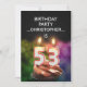 Adicione um nome para personalizar este convite de festas único.Um convite de aniversário 53º divertido com números de velas felizes queimando em um cupcake de chocolate. Veja toda a gama de convites e cartões na minha loja.