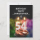 Adicione um nome para personalizar este convite de festas único.Um convite de aniversário divertido 54 com números de velas felizes queimando em um cupcake de chocolate. Veja toda a gama de convites e cartões na minha loja.