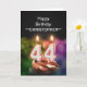 Queimando velas de bolo de aniversário de 44 em forma de números em cima de um cupcake de chocolate. Personalizar com o nome da pessoa de aniversário. Adequado para um homem ou uma mulher. Veja toda a gama de cartas para idades e relacionamentos na minha loja. Todos os direitos de autor da trabalho de arte Norma Cornes