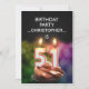 Adicione um nome para personalizar este convite de festas único.Uma convite de aniversário 51rua divertida com números de velas felizes queimando em um cupcake de chocolate. Veja toda a gama de convites e cartões na minha loja.