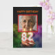 Adicione uma foto a este bolo de aniversário com velas. As velas são compostas pelo número 82, por um aniversário de 82 anos. Um cartão de aniversário adequado para todos.
