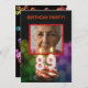Adicione uma imagem para personalizar este convite de festas único.Um divertido 89º convite de aniversário com números de velas felizes queimando em um cupcake de chocolate. Certifique-se de mudar o nome no verso para o nome do aniversariante ou garota. Veja toda a gama de convites e cartões na minha loja.