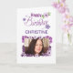 Adicione uma imagem e um nome para fazer um cartão de aniversário personalizado. Um brilhante cartão de aniversário com flores púrpura e margarida lilás. Uma carta adorável com esse toque pessoal.