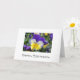 Adicione o seu texto sempre que receber cartão. flores pansy roxas e amarelas. fotografia da natureza floral.