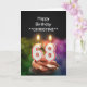 Queimando velas de bolo de aniversário de 68 anos em forma de números em cima de um cupcake de chocolate. Personalizar com o nome da pessoa de aniversário. Adequado para um homem ou uma mulher. Veja toda a gama de cartas para idades e relacionamentos na minha loja. Todos os direitos de autor da trabalho de arte Norma Cornes