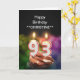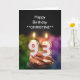 93rd velas de queimadura do bolo de aniversário na forma dos números sobre um cupcake do chocolate. Personalize com o nome da pessoa do aniversário. Apropriado para um homem ou uma mulher. Veja a escala inteira dos cartões para idades e relações em minha loja. Todos os direitos reservados Norma Cornes dos trabalhos de arte