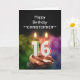 Queimando velas de bolo de 16 anos em forma de números em cima de um cupcake de chocolate. Personalizar com o nome da pessoa de aniversário. Adequado para um homem ou uma mulher. Veja toda a gama de cartas para idades e relacionamentos na minha loja. Todos os direitos de autor da trabalho de arte Norma Cornes