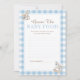 Teste as papilas gustativas dos seus hóspedes com este cartão de jogo "Adivinha Comida Bebê", com um delicioso cavalo de balanço de aquarela e um clássico design de xadrez azul. Este jogo divertido e interativo é uma adição perfeita ao chá do seu bebê, garantindo risos e alegria para todos os participantes.