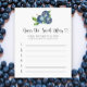 Cartão de convite para chá de fraldas em forma de grão com ilustração aquosa de mirtilos. O texto diz "um bebê doce de fruta está a caminho." Itens correspondentes disponíveis.