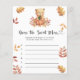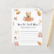 Celebrar com esta festa de chá de fraldas do ursinho de outono! Ursinho de pelúcia bonitinho com uma abóbora de outono nas patas do outono. No verso do cartão estão as folhas do outono. Itens correspondentes disponíveis.