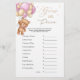 Um jogo divertido para o seu chá de fraldas. Este design apresenta um urso de pelúcia amigável com balões cor-de-rosa e creme. O texto "Adivinha o Preço" está escrito na letra da caligrafia moderna.