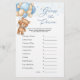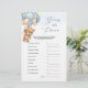Um jogo divertido para o seu chá de fraldas. Este design apresenta um urso de pelúcia amigável com balões azuis e creme. O texto "Adivinha o Preço" está escrito na letra da caligrafia moderna.