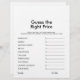 Este palpite é que o jogo do chá de panela de preço certo é uma atividade perfeita para uma celebração rústica do chá de panela. O design apresenta uma bela fonte em um fundo branco para embelezar seu evento.
