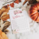 Adicione uma atividade divertida e envolvente ao seu chá de fraldas de outono com o nosso Poster "Fall Acess The Baby Comida Game". Esta poster apresenta uma design de outono festiva e incita os hóspedes a adivinhar os sabores de várias comidas de bebês. É uma forma excelente de manter seus convidados entretidos e adicionar um toque de encanto sazonal ao seu evento.