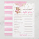 Adquira este cartão editável e desfrute do Jogo de Preço Direto de Viva de alta qualidade para o seu evento! Este é um modelo de cartão, Você pode personalizar o cartão, mudar o texto como quiser! Atividades de chá de fraldas! Jogo de adivinhação, rosa Dourado e Rosa.